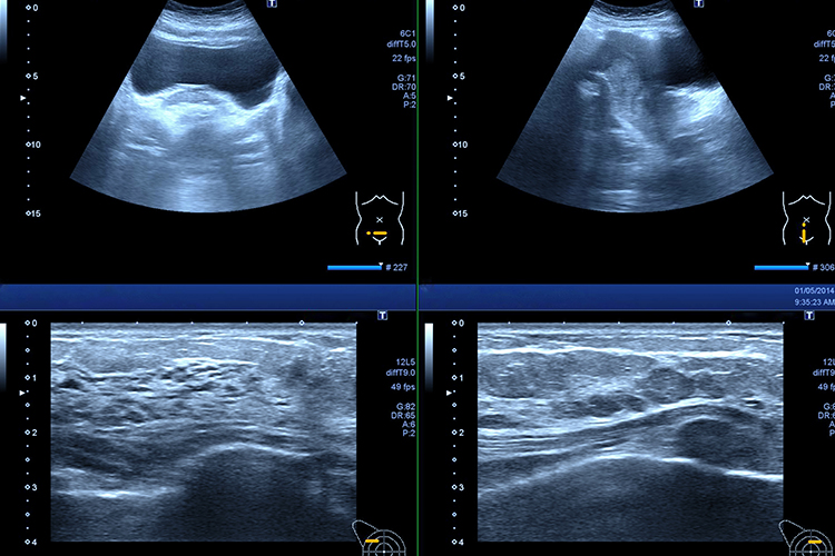 高周波音波を利用して体内組織を視覚化し、臓器の形や大きさ、動きなどを確認する検査です。犬や猫では、主に心臓、肺、肝臓、胆嚢、腎臓、膀胱、卵巣、子宮、前立腺、脾臓、十二指腸、副腎、腹腔リンパ節などの臓器を確認することができます。